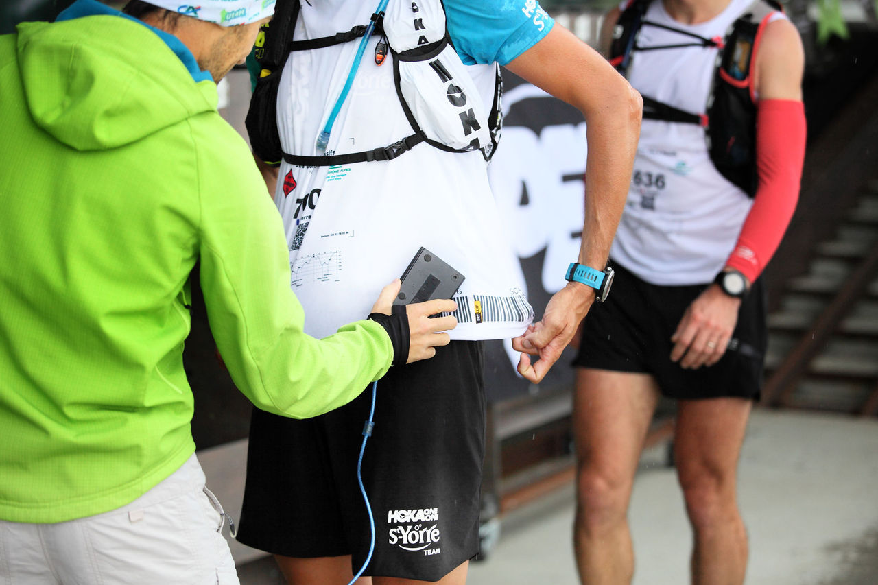 Aurélien Collet en tête lors du passage au ravito de La Morte. Evidemment il a tout déglingué, Aurélien était au dessus du lot.